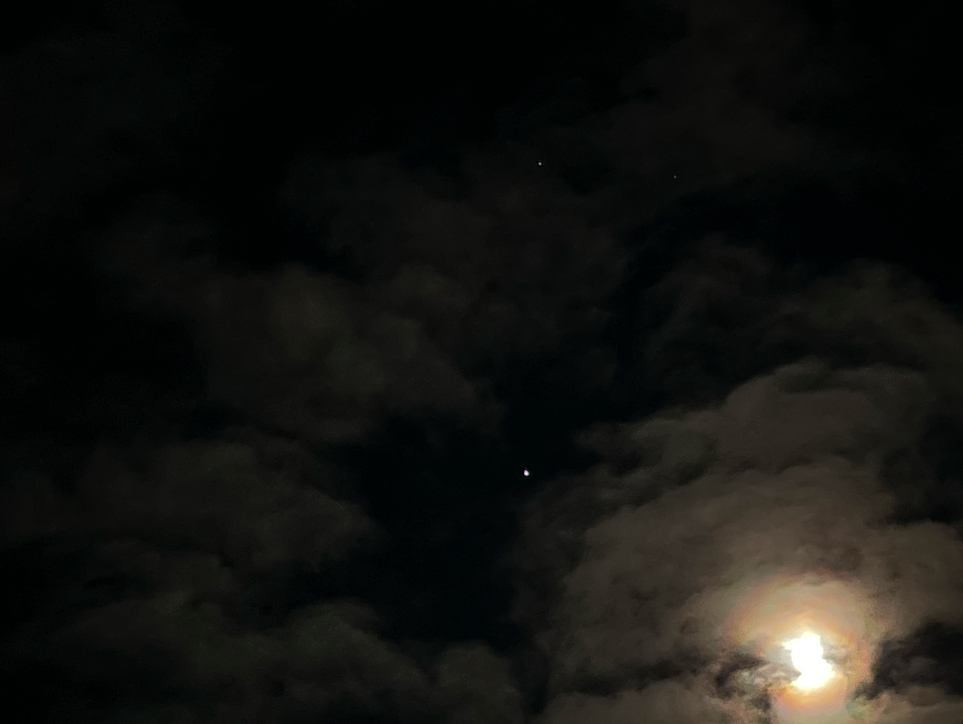 2026年2月27日の神奈川県の夜空はまあまあ曇っていて、上弦を過ぎた月が雲の向こうでおばけのようにぼんやりしていました。密かにおばけ月と呼んでいます。