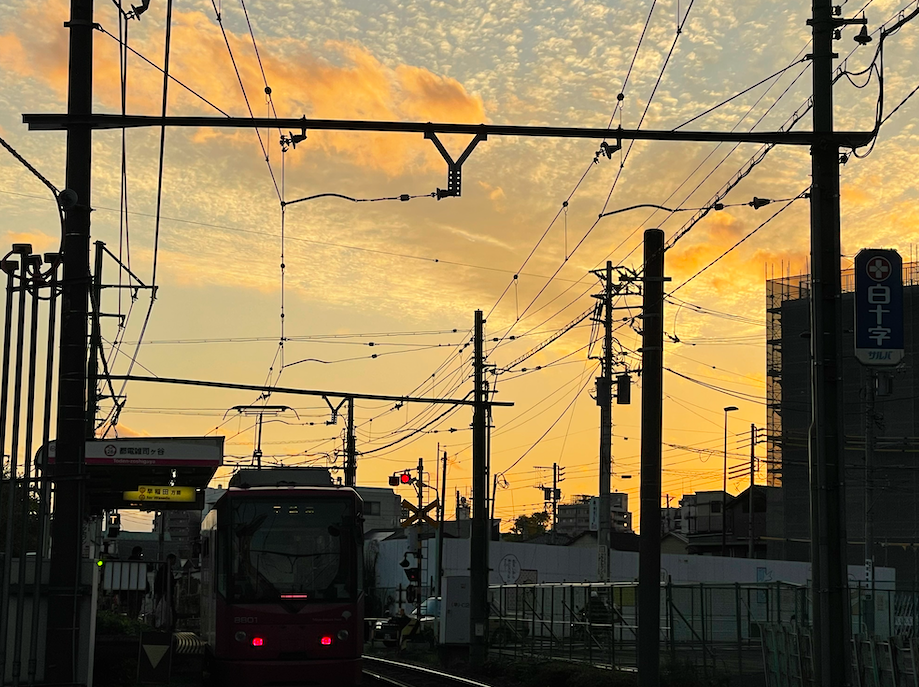 雑司ヶ谷霊園に向かう途中で通りかかった雑司ヶ谷駅と桜トラム。トラムって夕焼けに映えますね。