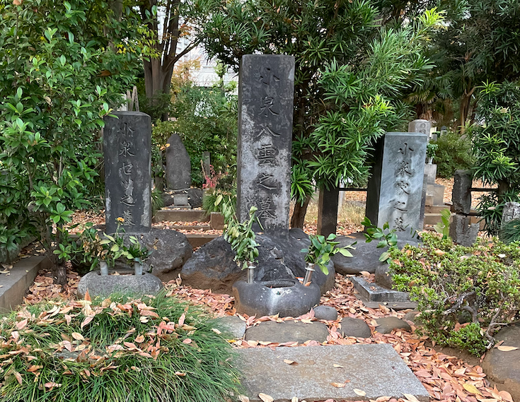 配信で読ませていただいたセツさんの『思い出の記』の終盤には、セツさんと八雲さんが八雲さんの死後について語り合うシーンがあります。騒がしいことが嫌いな八雲さんは、色々考えて今は雑司ヶ谷霊園で、セツさんと並んで眠っています。(ちなみに同じく雑司ヶ谷霊園には、配信でちょこっと触れた夏目さんもいます。)