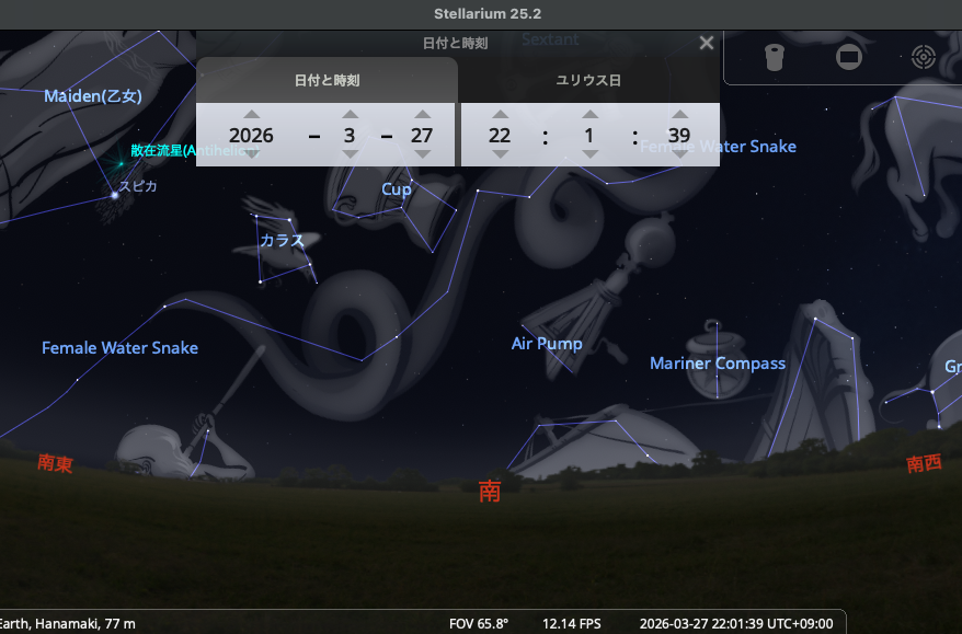 今夜はガッツリ文系の星空紹介でした。過去にも取り上げた『銀河鉄道の夜』より、ケンタウルス座に焦点を当てました。南天の星座ですが、星の図鑑によっては春の星座としてジャンル分けされていることもあります。春が見頃なんですね。見頃と言っても、現在の日本ではほとんどのエリアで全体を見ることは出来ません。