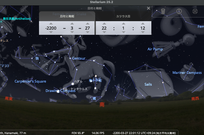 『銀河鉄道の夜』の第三次稿に出てくるブルカニロ博士は、物語の終盤で、紀元前2200年ごろに書かれた辞典をジョバンニに紹介します。今から4000年前のことも意識していたなら、当時の北半球からもケンタウルス座(や旅の終わりのみなみじゅうじ座)が見れる地域が多かったことを、賢治は考えたかもしれません。