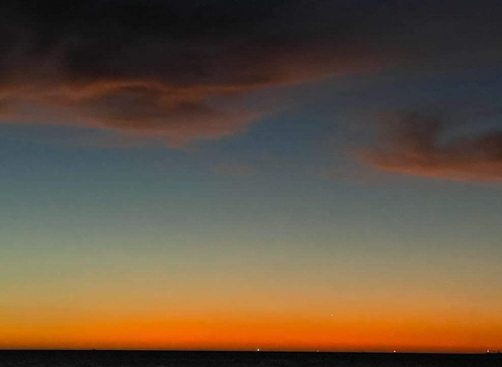 海辺のFremantle、思いついてこの日の最後に波打ち際まで行って、日没を待ってみることにしました。最初はビールを片手に浜辺のバーで、飲み終わって静かにじっと太陽を見送る1時間。地元民と思しき人や観光客らしい人、様々な言葉を話す人たちが集まって、皆んなサンセットに見入っています。古今東西、夕暮れ時というのは人々に特別な時間を与えるんだなと思いました。