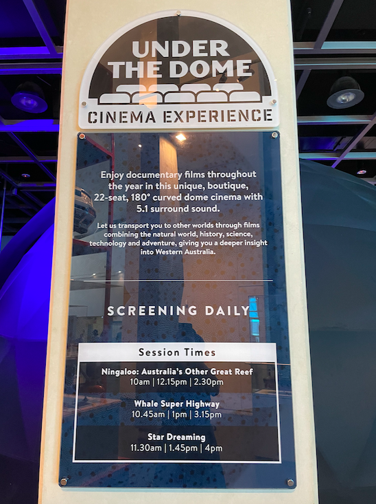 そして海事博物館の3Fには小型のドームがあるのですが、そこでは3種の番組が上映されていました。1つはグレートリーフ、もう1つはクジラ、そして最後はStar Dreamingという星の番組です!まさかここでこんなに大々的に星に出会うとは思わなかったのでびっくりです。正直船とはあんまり関係なさそうな内容でしたが、私にとっては何の問題もないどころか嬉しい誤算なので、スキップ気分でドーム内へ。
