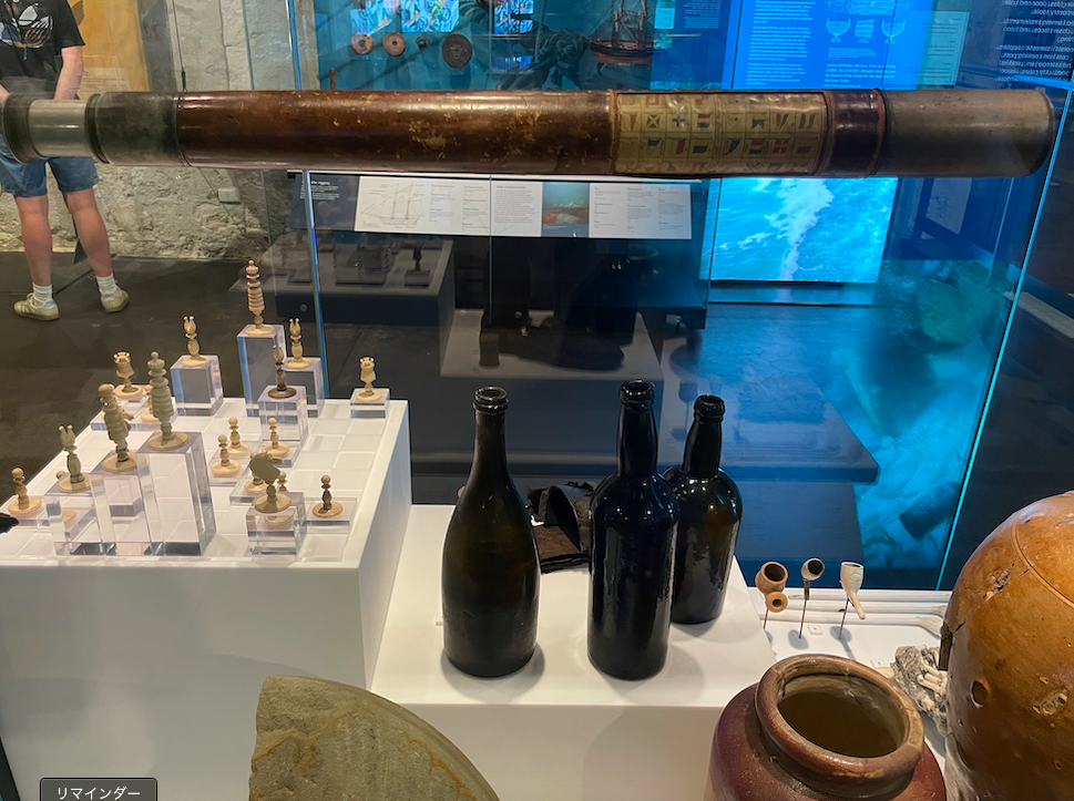 もう一つの博物館、難破船博物館では船そのものというより、沈没船で見つかったさまざまな遺物がメインのようでした。なんと19世紀半ばの沈没船から見つかったガリレオ式望遠鏡もありましたよ!もうテンション上がります。